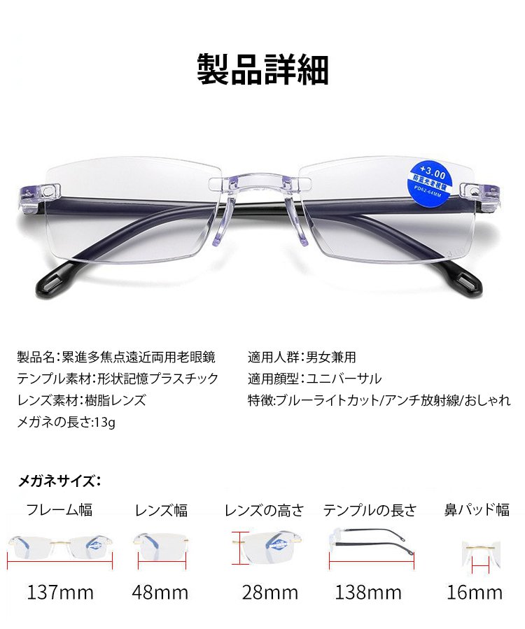 【ドイツ輸入のツァイスレンズ】1つ買うと1つ無料でプレゼント 累進多焦点遠近両用老眼鏡