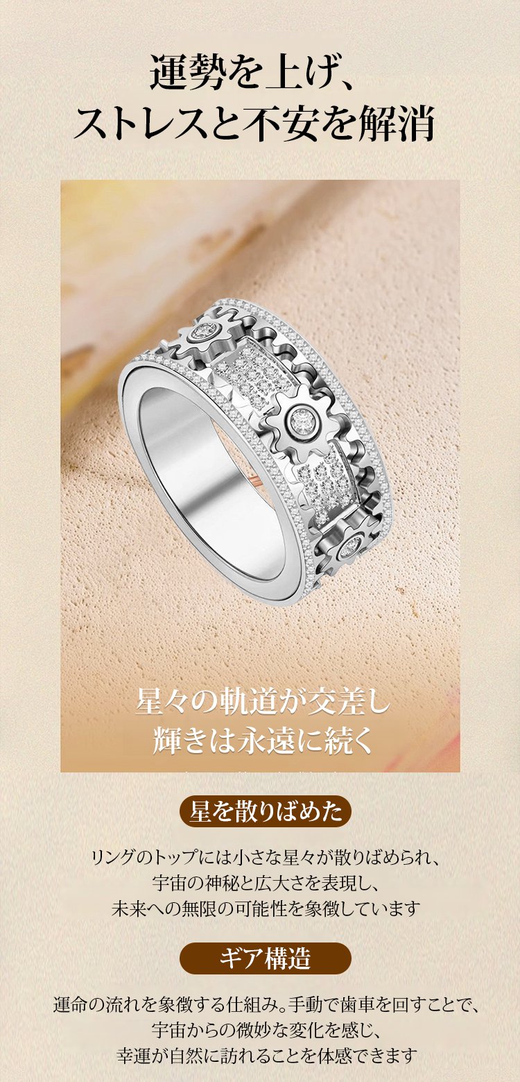 【開運グッズ】歯車モチーフのキラキラ回転リング